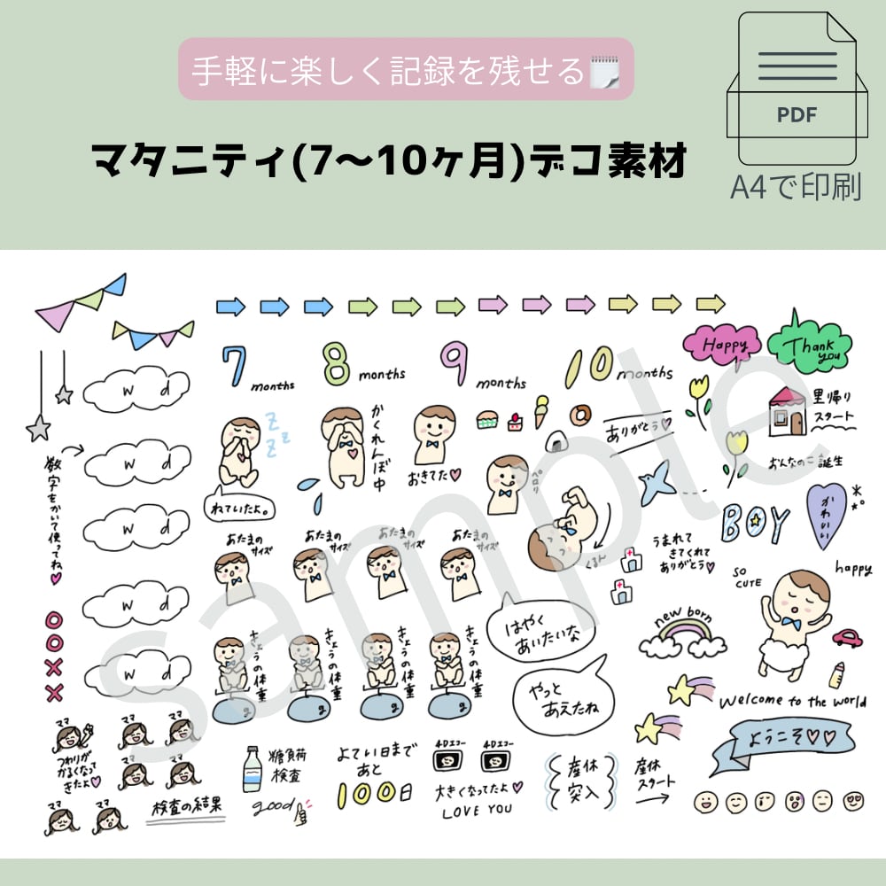 妊娠中の記録デコ素材。